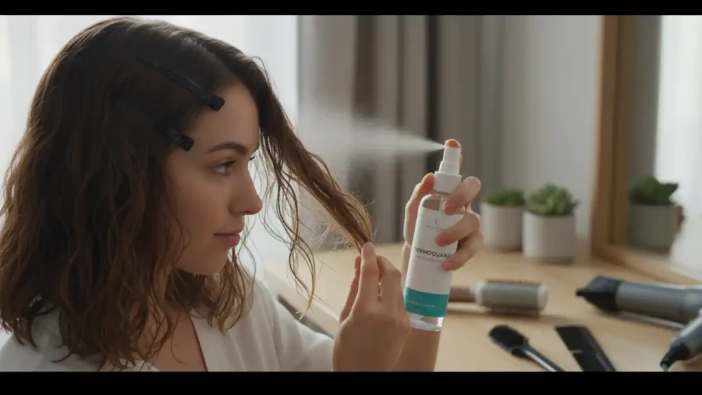 Look for heat protectants with ingredients like dimethicone, cyclomethicone, or various polymers. These create the most effective thermal barrier. And apply generously – a little spritz won’t cut it. You need enough product to actually coat your strands.