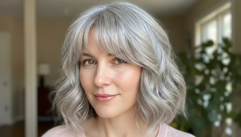 10. Wavy Silver Bob with Bangs — Natural Texture, Maximum Volume